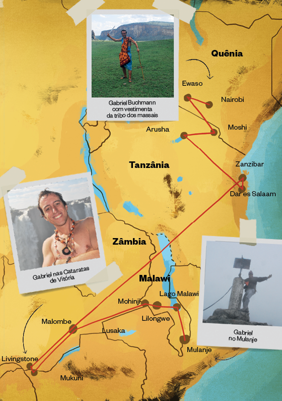 Em julho de 2009, o corpo do economista Gabriel Buchmann, de 28 anos, foi encontrado no Monte Mulanje, no Malaui, na África. Quase um ano antes, ele partira de mochilão pelo mundo. Era uma preparação para o doutorado em políticas públicas para países em desenvolvimento, que faria na Universidade da Califórnia, em Los Angeles. Percorreu 26 países no Sudeste Asiático, no Oriente Médio e na África. Conheceu gente, aprendeu, errou.